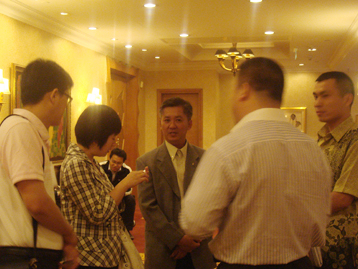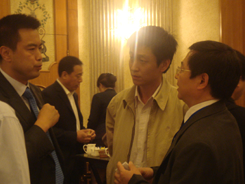 亞洲金屬網(wǎng)分析師王秋紅與新加坡幸福陽光貿(mào)易經(jīng)理顏木彪合影 亞洲金屬網(wǎng)基本金屬部經(jīng)理高興同與越煤集團(tuán)鋁礦處副處長阮志光合影