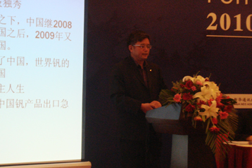 中國礦產(chǎn)有限責(zé)任公司總經(jīng)理朱江先生分析了經(jīng)濟(jì)危機(jī)之后中國合金原料市場的變化,河北鋼鐵集團(tuán)承德分公司釩鈦產(chǎn)品研究中心主任陳東輝先生就中國釩鐵和五氧化二釩供需狀況進(jìn)行了詳細(xì)分析。