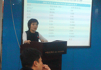 - 最后,亞洲金屬網(wǎng)爐料事業(yè)部經(jīng)理吳瑞娟女士做了精彩的發(fā)言,其主題為中國(guó)鋼材市場(chǎng)經(jīng)濟(jì)運(yùn)行走勢(shì)分析及展望。首先對(duì)2011年中國(guó)鋼材市場(chǎng)進(jìn)行了回顧,整體表現(xiàn)低迷,行業(yè)供需矛盾仍明顯,供大于求。2011年1-10月中國(guó)粗鋼產(chǎn)量達(dá)5.8億噸,同比增長(zhǎng)了11.1%。預(yù)計(jì)全年粗鋼產(chǎn)量將會(huì)突破6.6億噸。1-10月份中國(guó)粗鋼產(chǎn)量占世界鋼協(xié)統(tǒng)計(jì)的全球64個(gè)主要產(chǎn)鋼國(guó)家和地區(qū)粗鋼總產(chǎn)量的46.1%。另一方面,鋼鐵行業(yè)終端需求低迷,需求來(lái)源主要包括房地產(chǎn)、機(jī)械、汽車、船舶和家電等。受房產(chǎn)打壓政策影響,中國(guó)房地產(chǎn)行業(yè)全年呈低迷狀態(tài),開(kāi)工和竣工面積均同比回落。汽車、機(jī)械、船舶和家電行業(yè)雖有增長(zhǎng),但同步增長(zhǎng)率較之粗鋼相形見(jiàn)絀。同時(shí),吳經(jīng)理提出鋼鐵行業(yè)“兩高一低”的弊病,即高消耗、高庫(kù)存和低效益。而后,她對(duì)2012年鋼鐵市場(chǎng)做出了展望。
