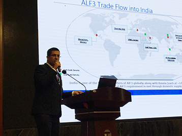 財通證券股份有限公司首席分析師李帥華先生分析了當(dāng)前中國電解鋁市場發(fā)展趨勢;新疆神火炭素制品有限公司總經(jīng)理張紹茂先生介紹了新疆地區(qū)鋁用陽極供需現(xiàn)狀;印度塔塔國際公司市場主管阿克沙伊.馬爾霍特拉先生圍繞印度氟化鋁市場需求做了詳細解讀。
